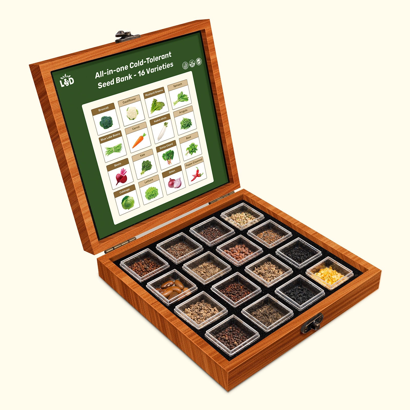 Beat the cold with 16 carefully curated cold-hardy seed varieties. From crisp winter greens to robust root vegetables to tough herbs, each seed in this bank is selected for its suitability, making winter gardening a breeze. Watch as your garden withstands the cold and emerges vibrant and abundant.
