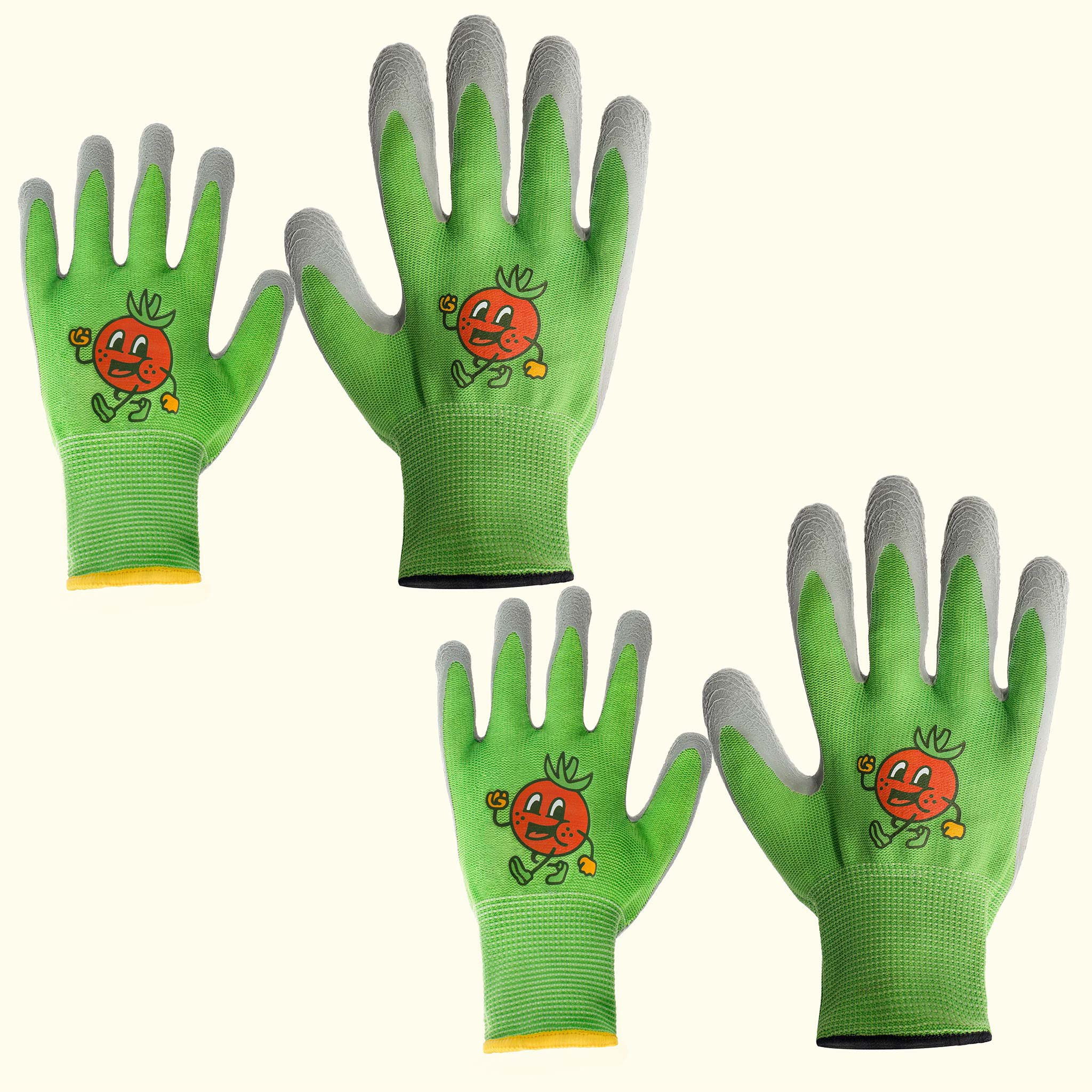 Kids gardening gloves are perfect for little ones who love to help in the garden or explore the great outdoors. The gloves provide excellent protection for small hands while allowing maximum dexterity and movement. The bright green color and tomato cartoon design are sure to grab kids' attention and make gardening a fun and exciting experience. Plus, this set comes with 2 pairs of gloves in 2 sizes - one for adults and one for kids - so there is something for everyone.