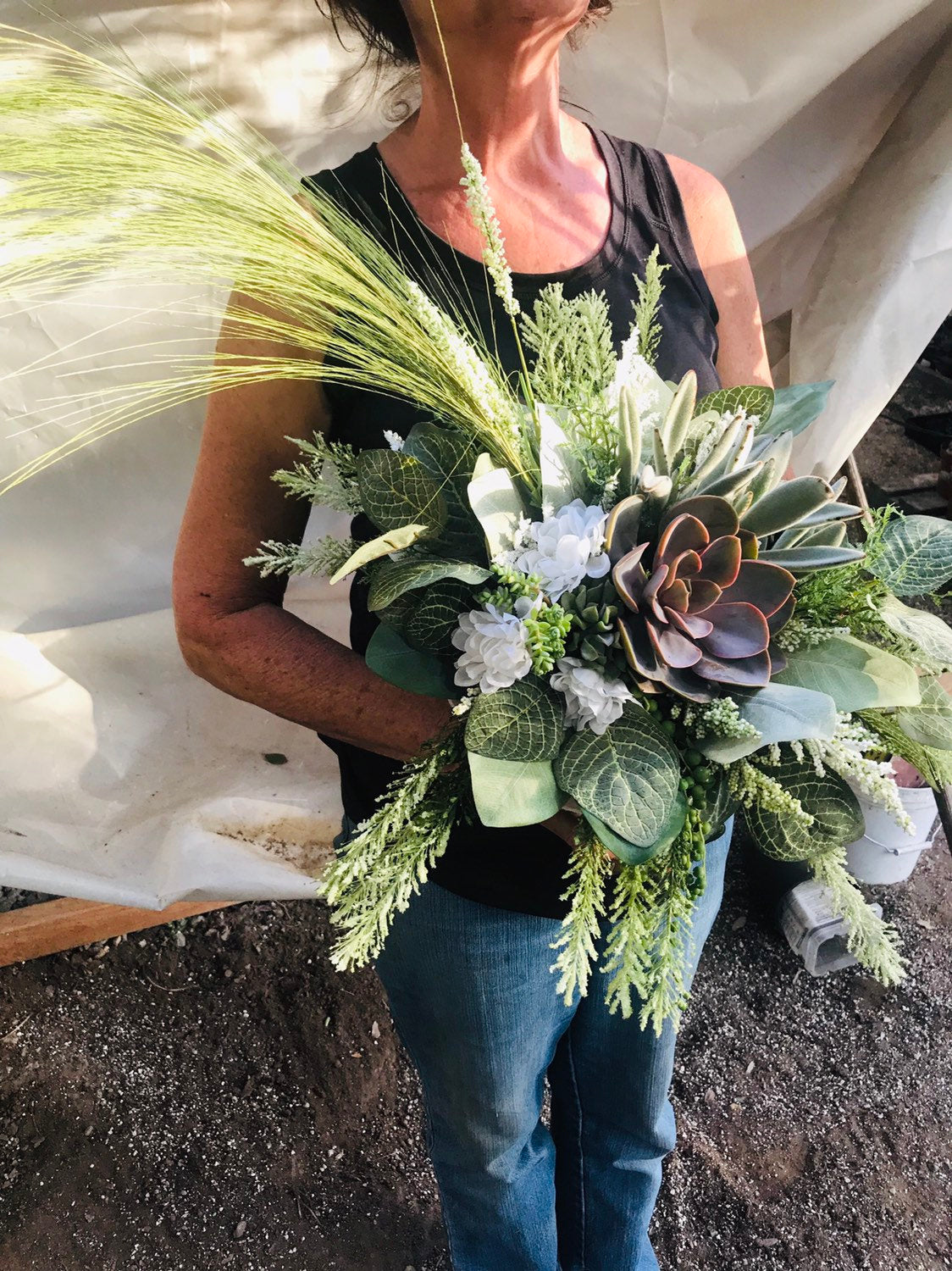 Stunning wedding bouquet filled with PVB, string of pearls , bear paw, and panda plants succulents filled through out the bouquet . Fake greenery is used unless live is requested .