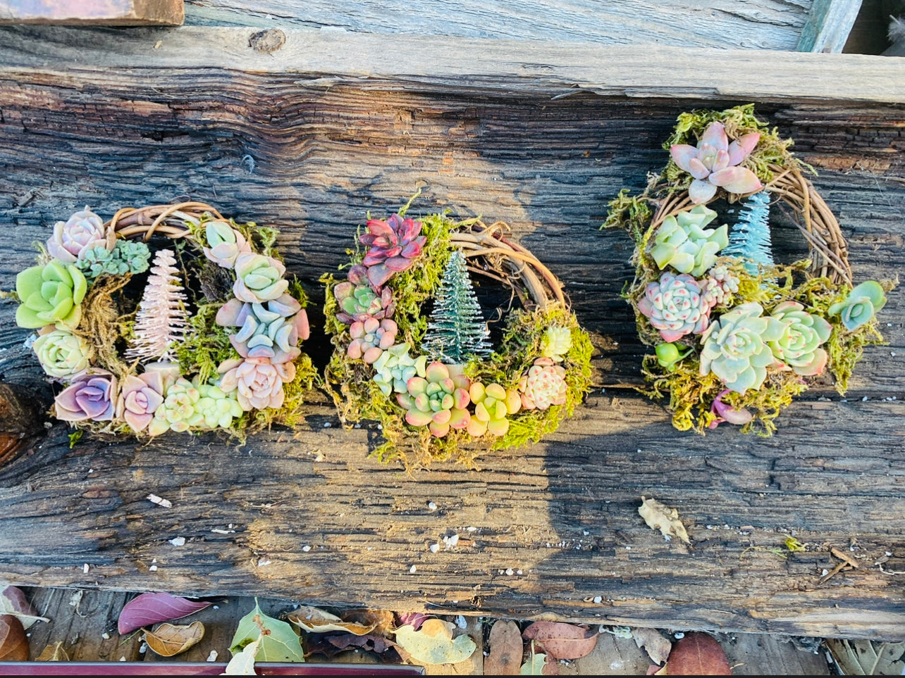 fulled 1/2 way with colorful succulents to match the mini Christmas tree color .