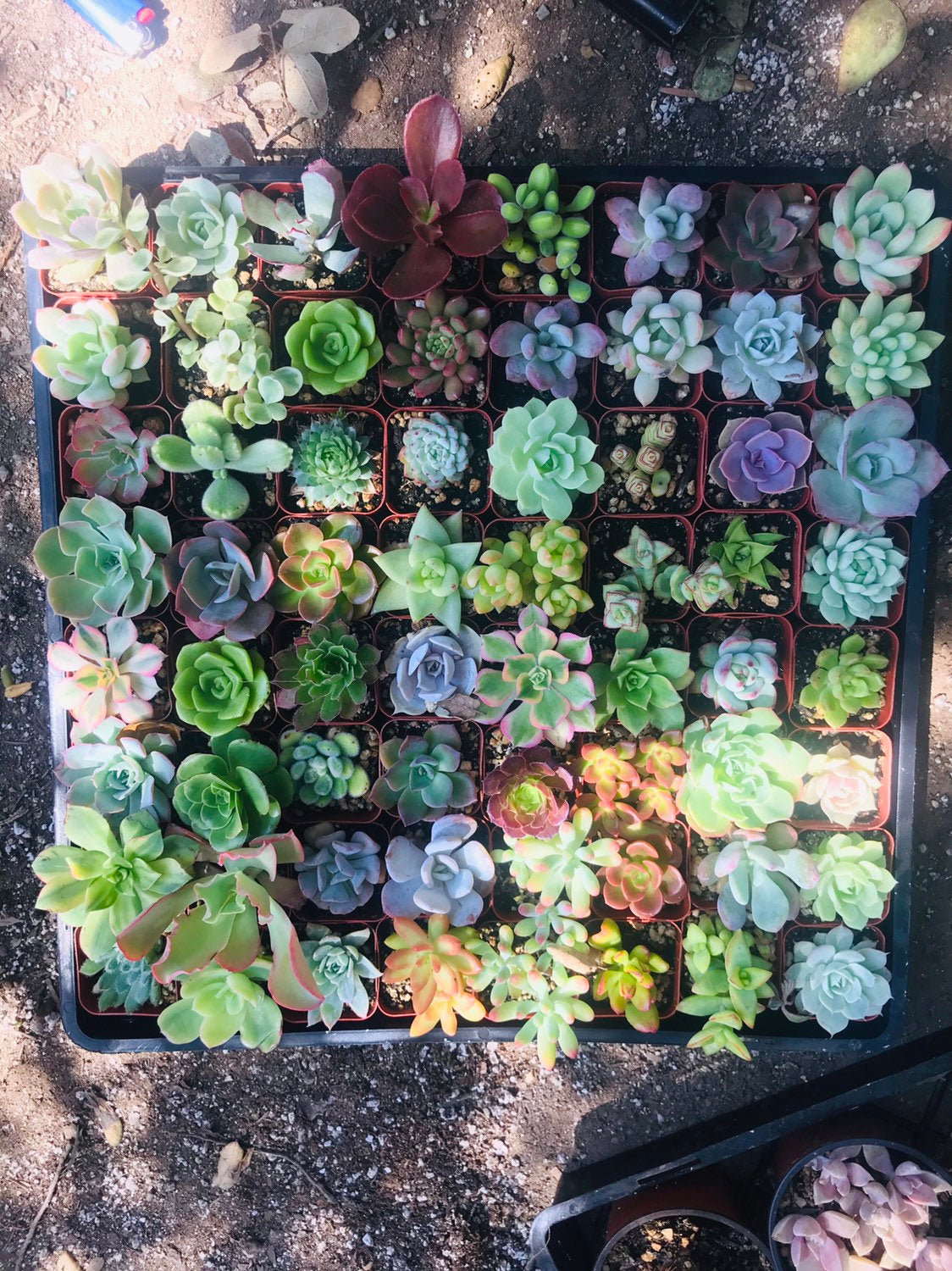 8 pack of mixed succulents (rooted) no editing to enhance what you see on my page is real product in real time . This succulent mix are grown out of there 2 inch pots . The color ones of this set are pink, blue green and brown . All get even more enhanced color as they are slowly introduced into sunlight .or water stressed. No two plants the same in this 8 pack . Unless requested . Shipped bare root for safety. If soil is needed please let me know and I will send along with the containers