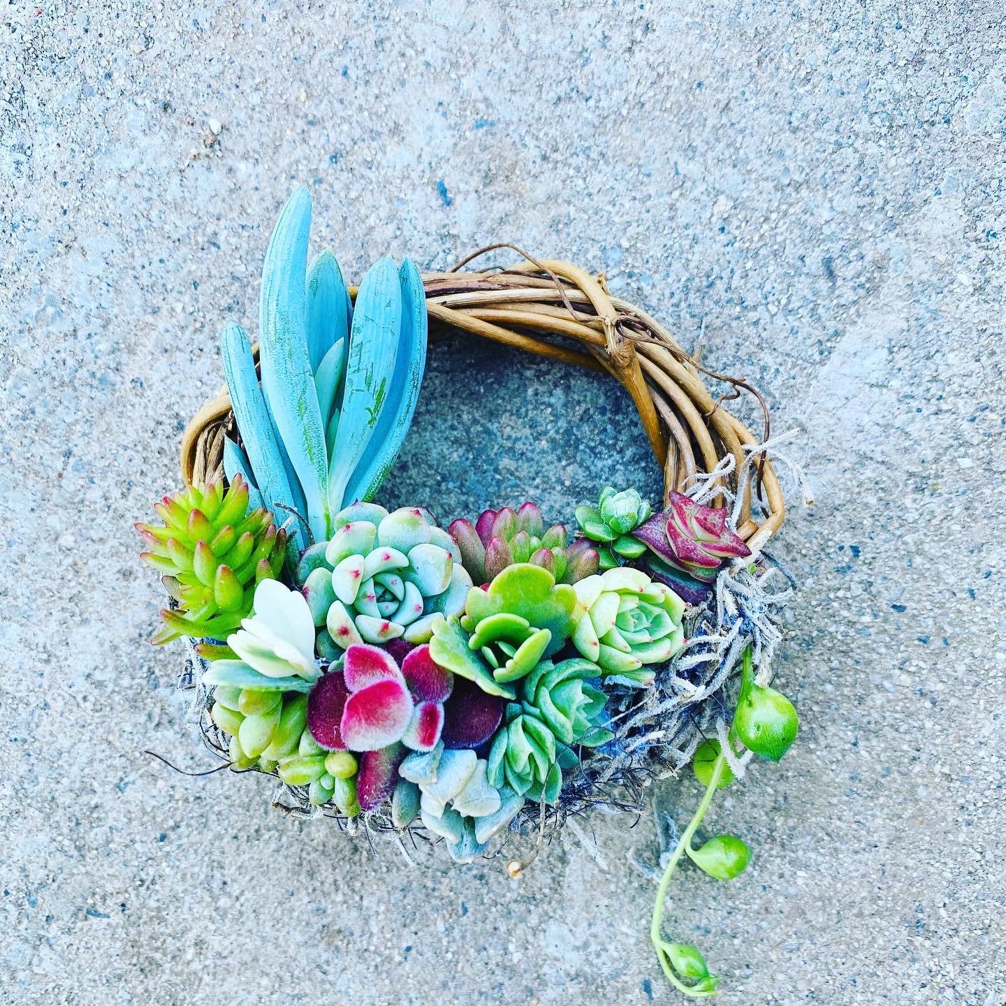 Comes with mini succulents planted in living moss . 4 inch mini succulent wreath .