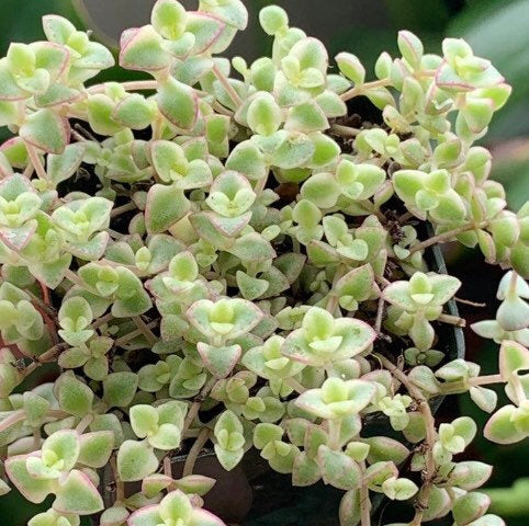 2 inch pot full of variegated little missy sedum shipped bareroot on in pit with small amounts of soil to prevent rotting . These cute sedums are a fast growing sedum that turns pink around all the tips of the leaf .