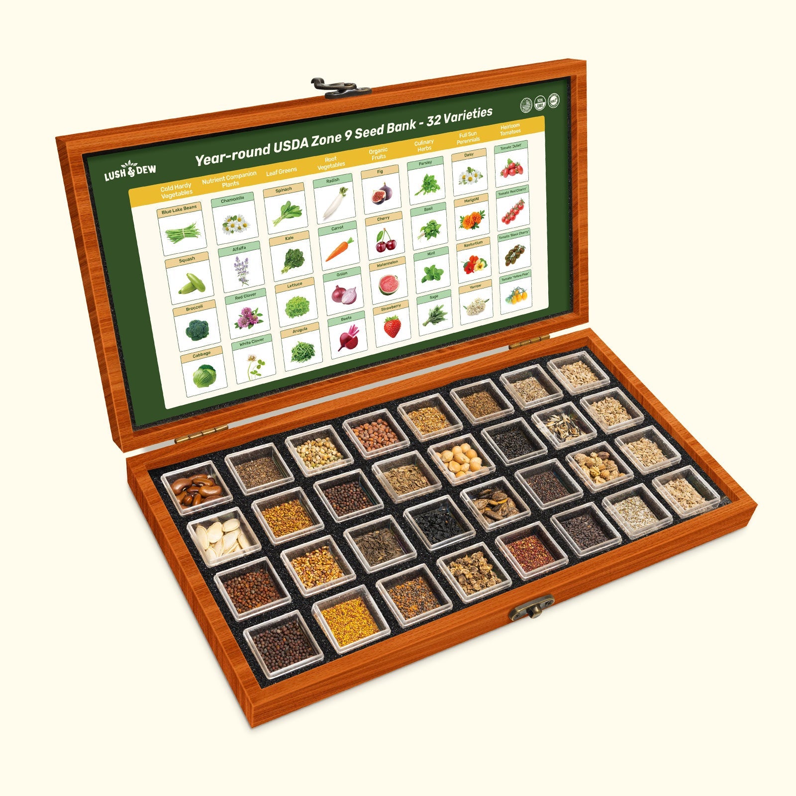 Whether it's juicy tomatoes for summer salads, fragrant herbs for winter soups, or colorful blossoms to brighten your home, this carefully curated seed bank empowers you to enjoy an endless supply of homegrown abundance, making every day a celebration of the garden's gifts. Additionally, the growing season in USDA Zone 9 is relatively long, which means more time to enjoy fresh produce and beautiful flowers. Say goodbye to seasonal restrictions and welcome year-round harvests that enrich your table and elevate your culinary creations.